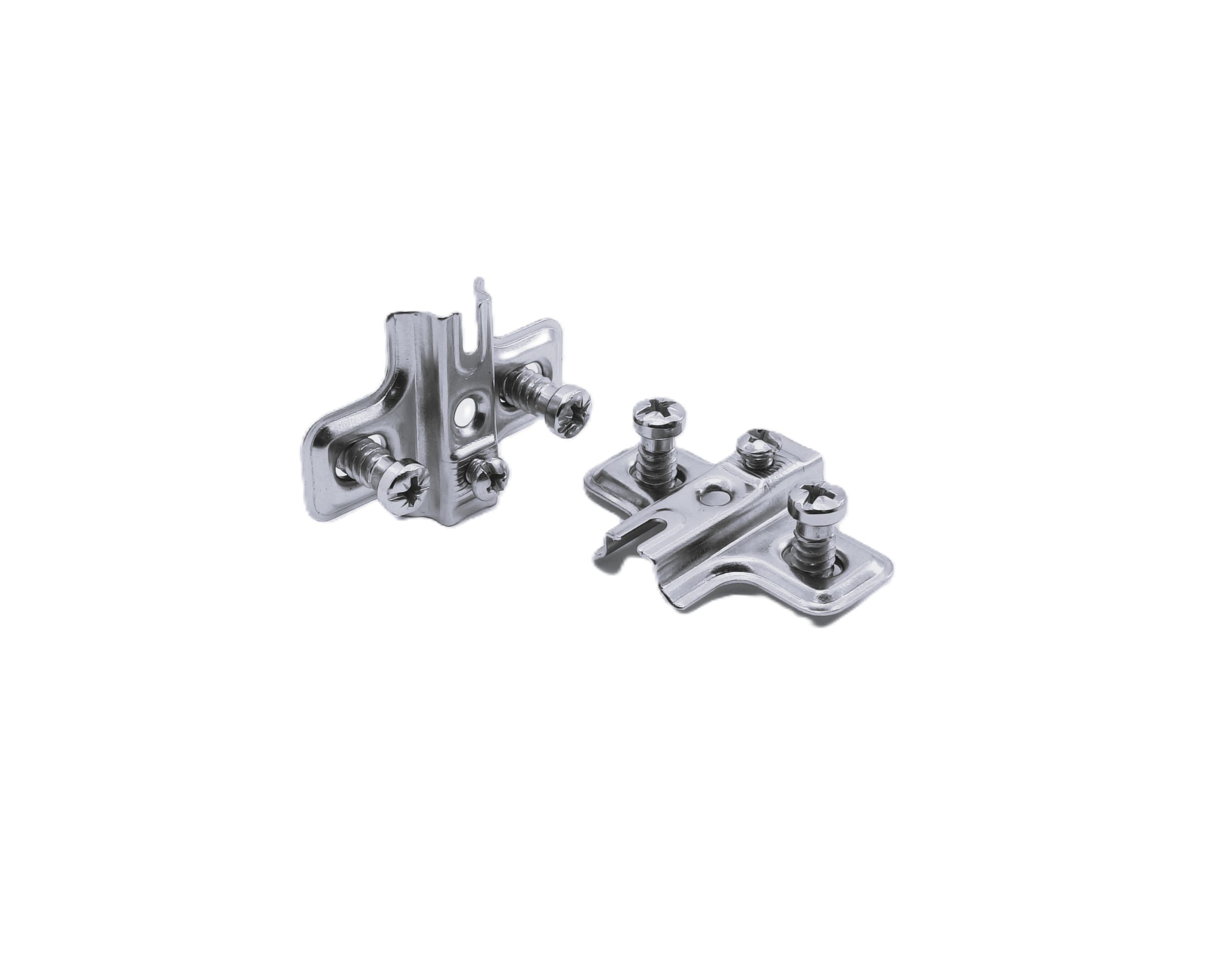 Base bisagra mini de acero, ideal para fijación precisa en muebles compactos.