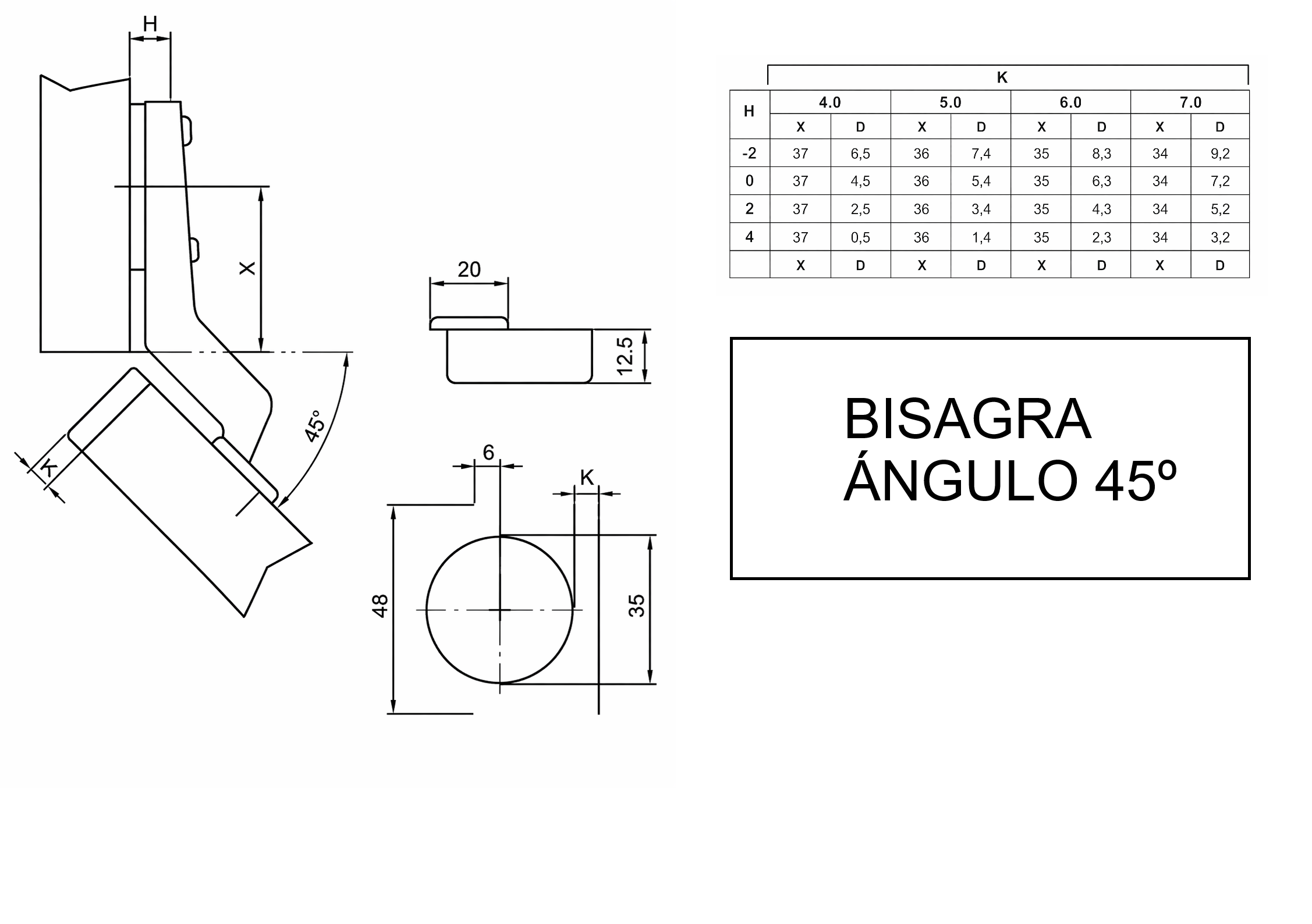 | 100011 | BISAGRA ÁNGULO 45 - 35MM M/T |
