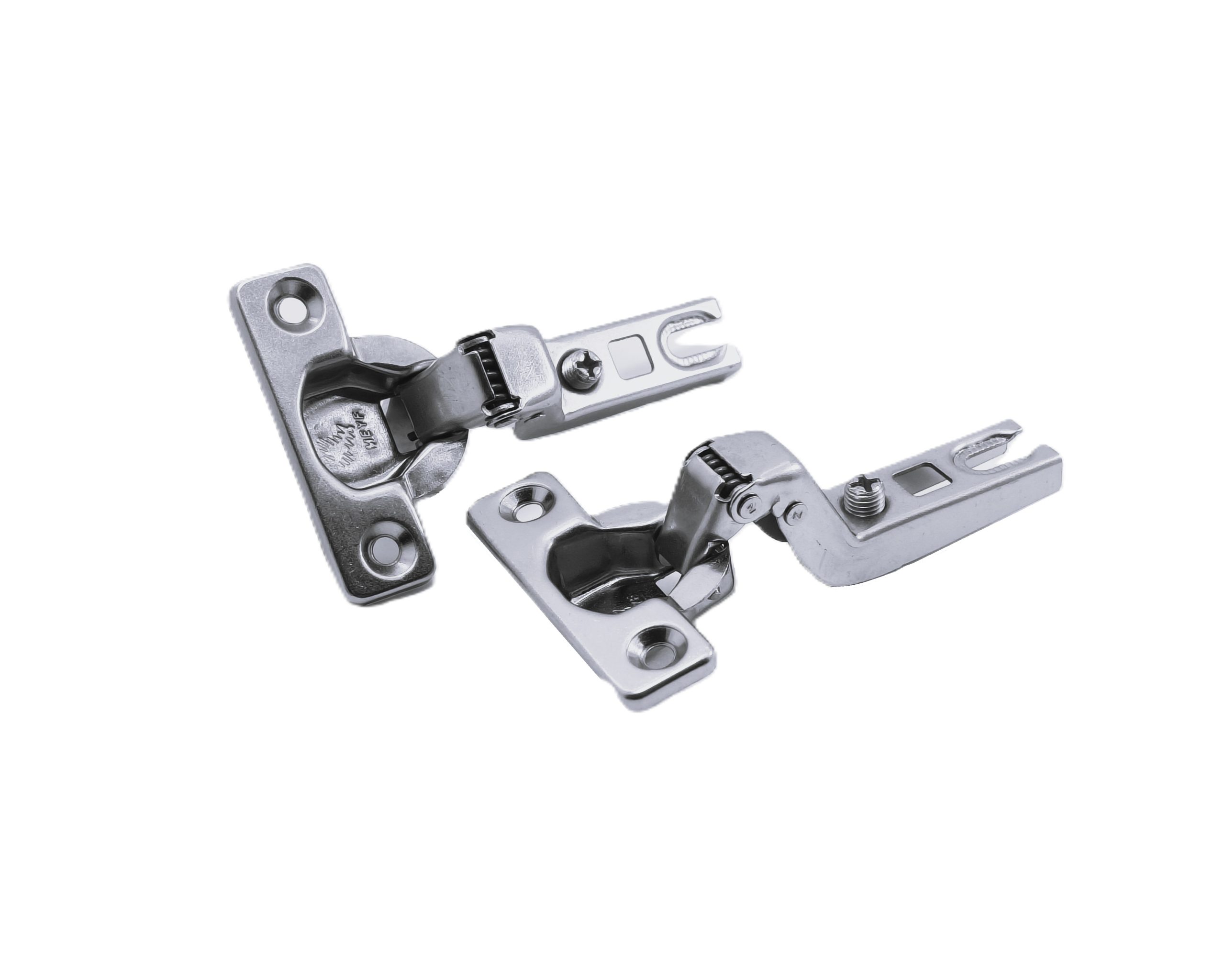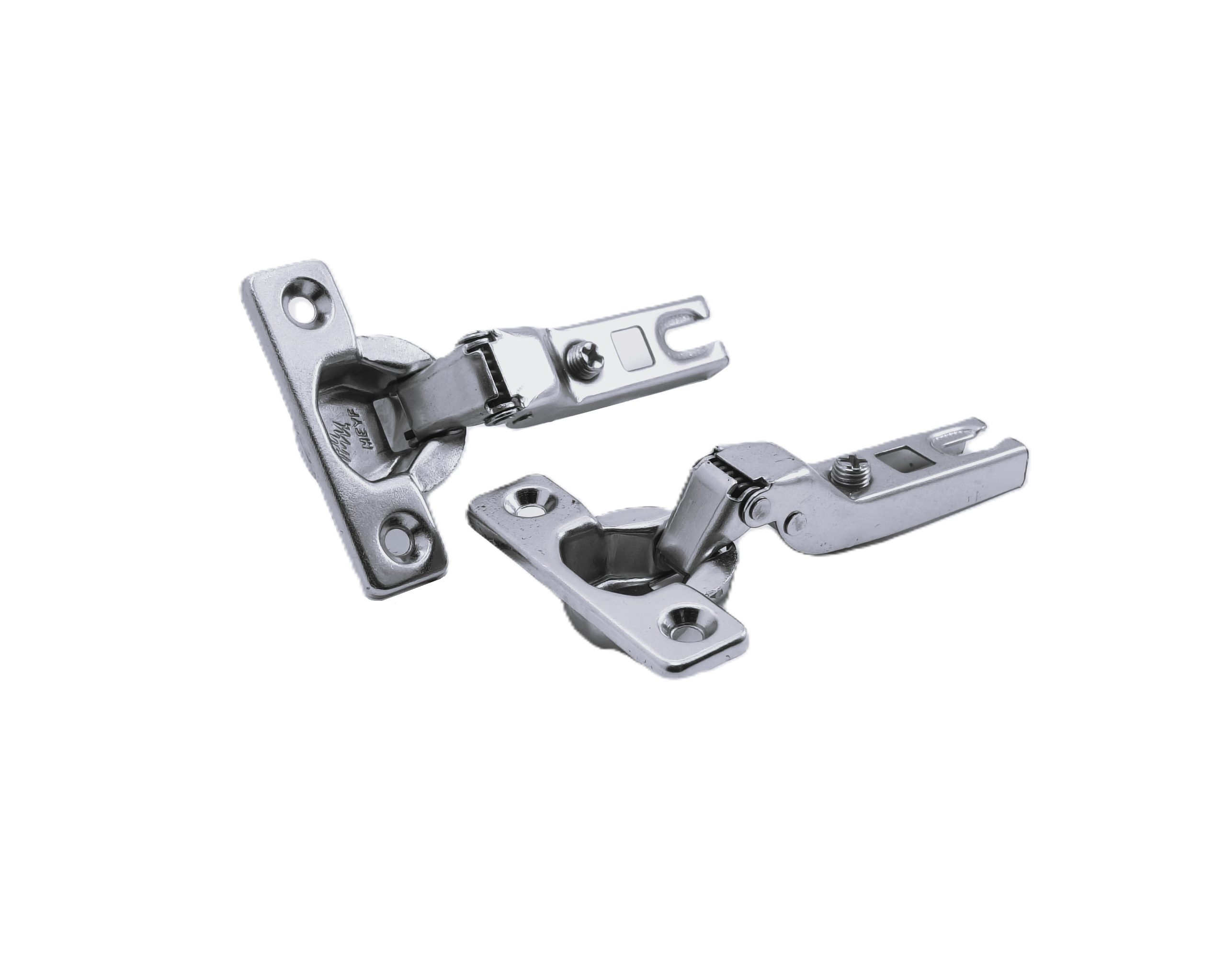 Bisagras mini disponibles en versiones recta, acodada y super acodada, fabricadas en acero de alta resistencia, diseñadas para la articulación de puertas en mobiliario compacto.