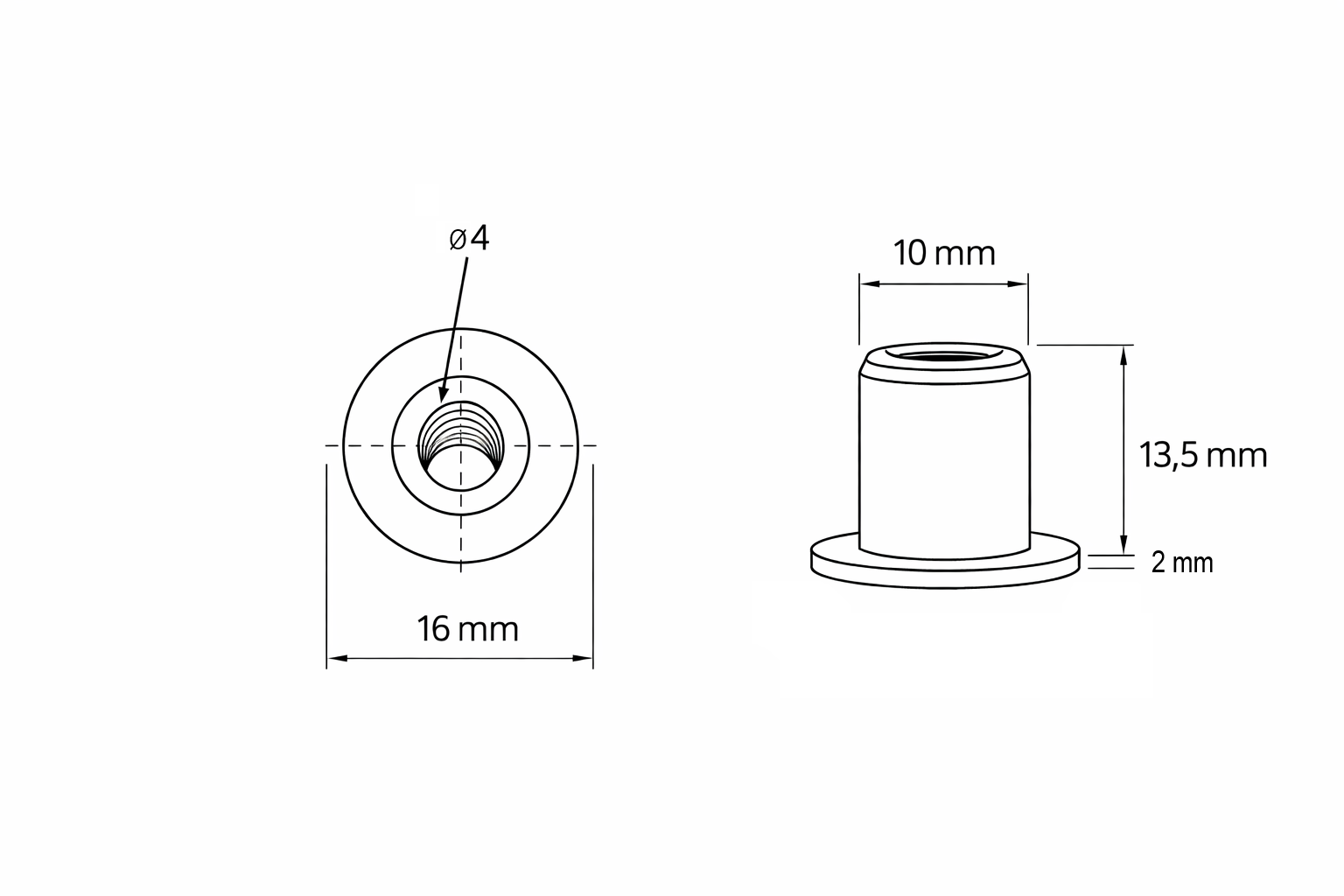 Bulón cierre con agujero central, ideal para sistemas de bloqueo y fijación en mobiliario.