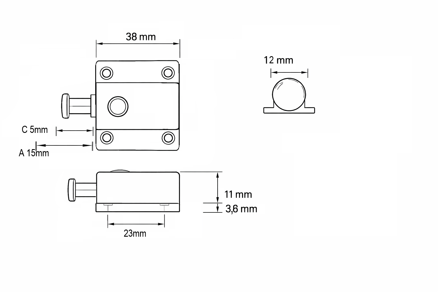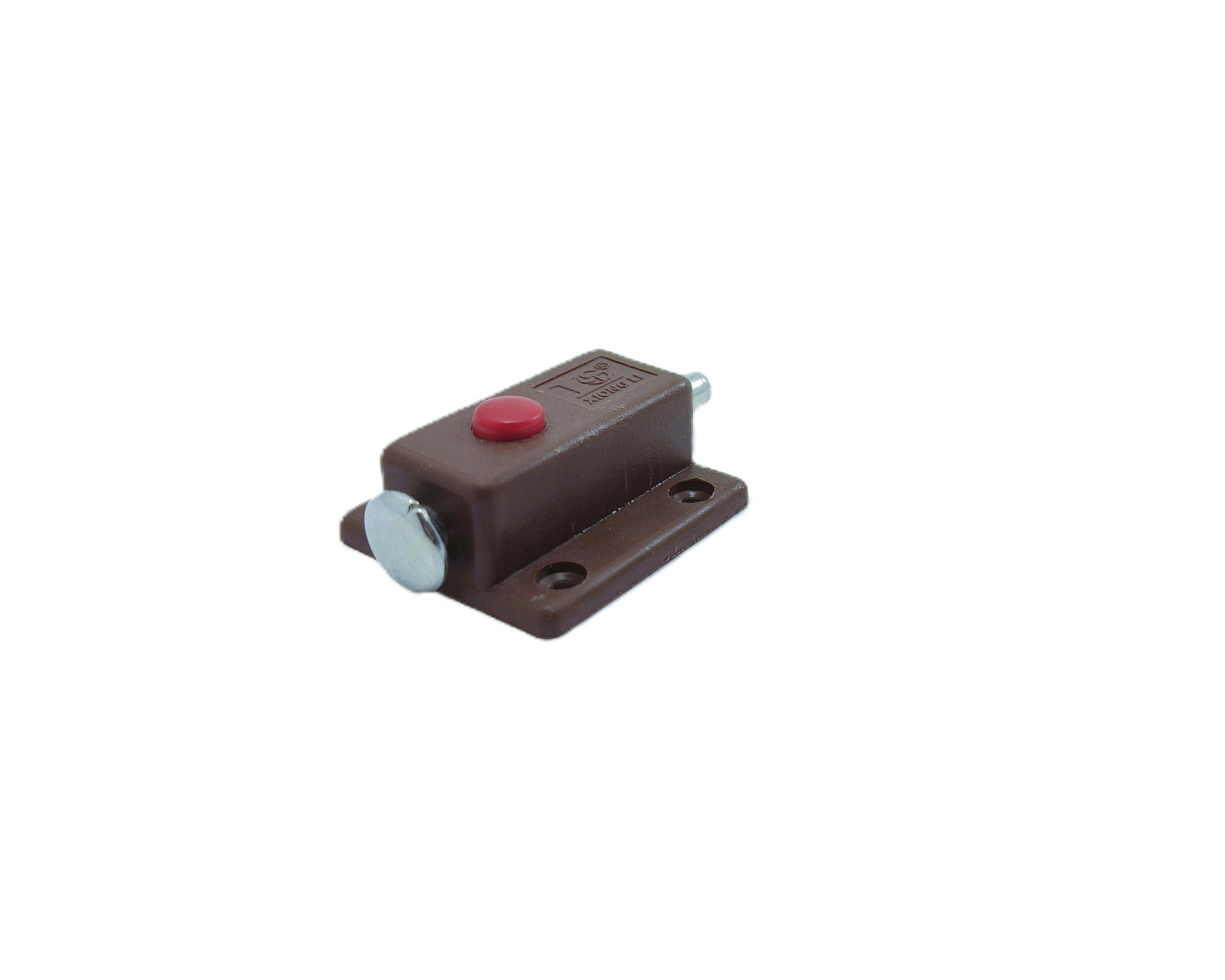 Cierre de mesa tipo botón fabricado en metal y plástico de alta resistencia, diseñado para asegurar la unión y bloqueo de tableros en mesas extensibles o plegables.