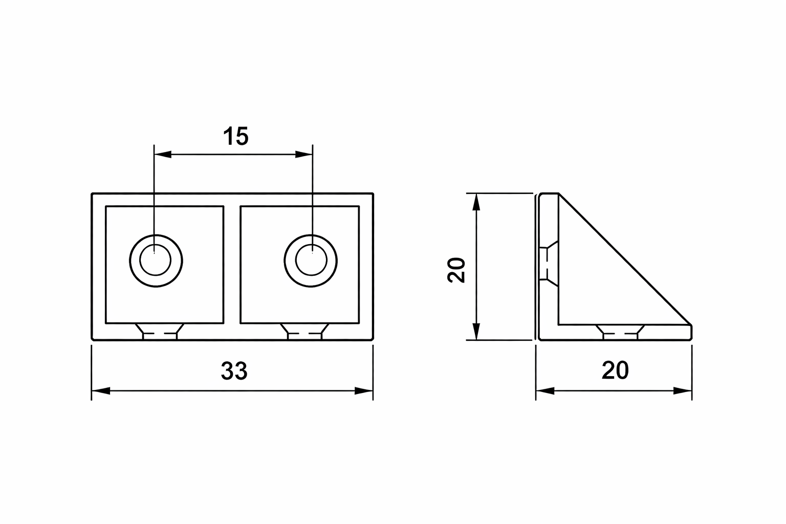 Escuadra con nervio de refuerzo fabricada en plástico técnico de alta resistencia, diseñada para la unión y refuerzo en ángulo recto en mobiliario.