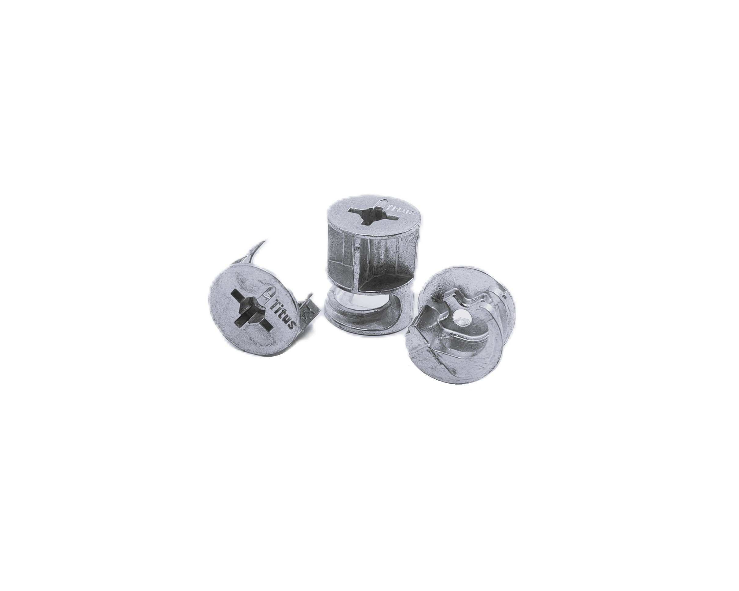 Fabricada generalmente en zamak o metal de alta resistencia, permite realizar uniones firmes y ocultas mediante su acoplamiento con tornillos minifix o pernos de unión.