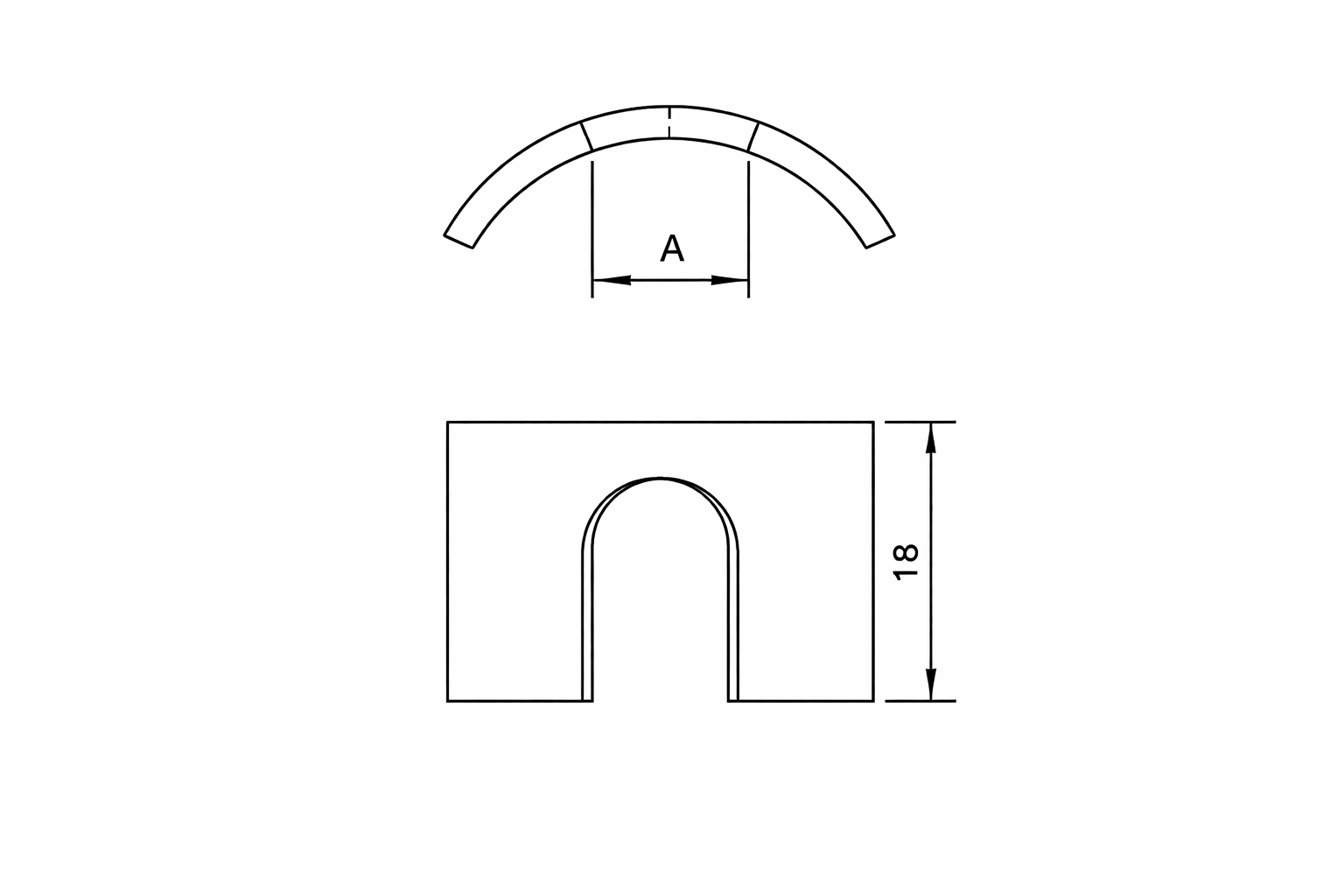 Media luna abierta fabricada en material resistente, diseñada para formar parte de sistemas de unión en mobiliario.
