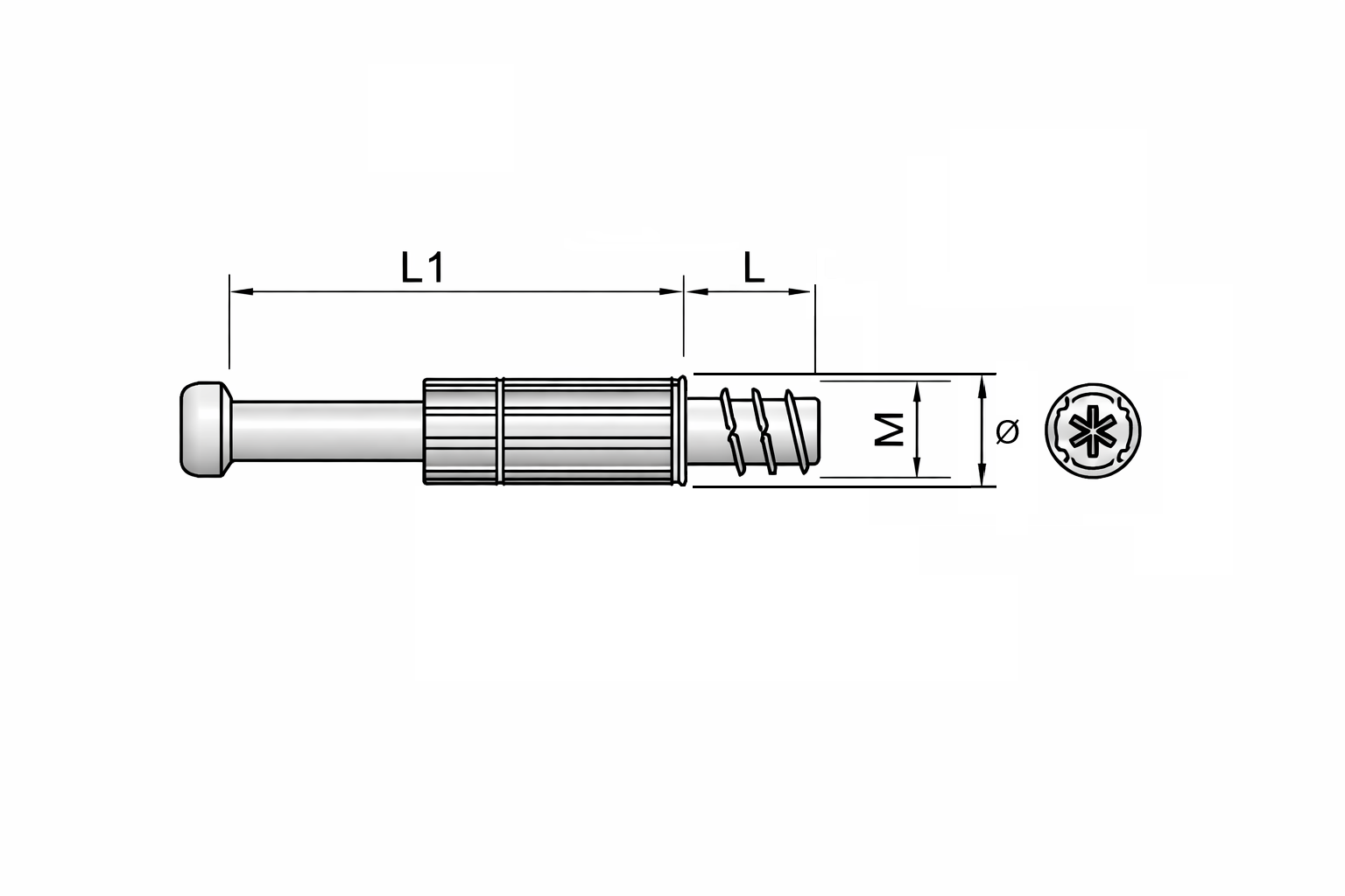 Perno plástico de 34 mm con rosca para madera, ideal para uniones estables en paneles y sistemas minifix.