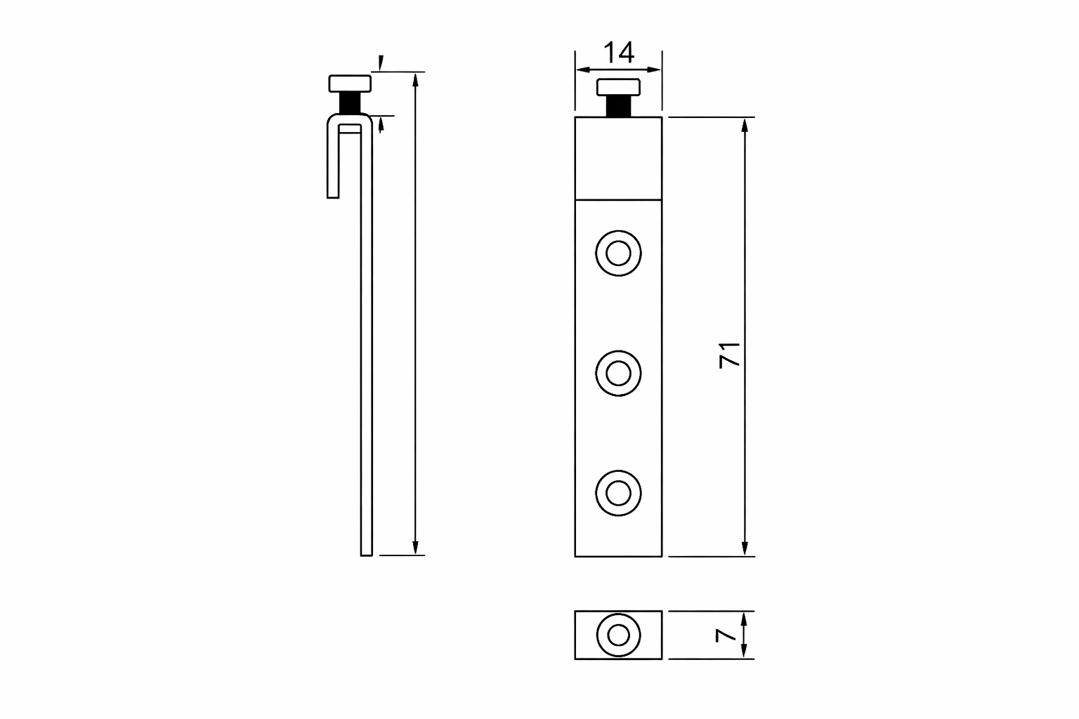 Pletina colgador fabricada en acero de alta resistencia, diseñada para la suspensión segura de muebles o paneles a pared.