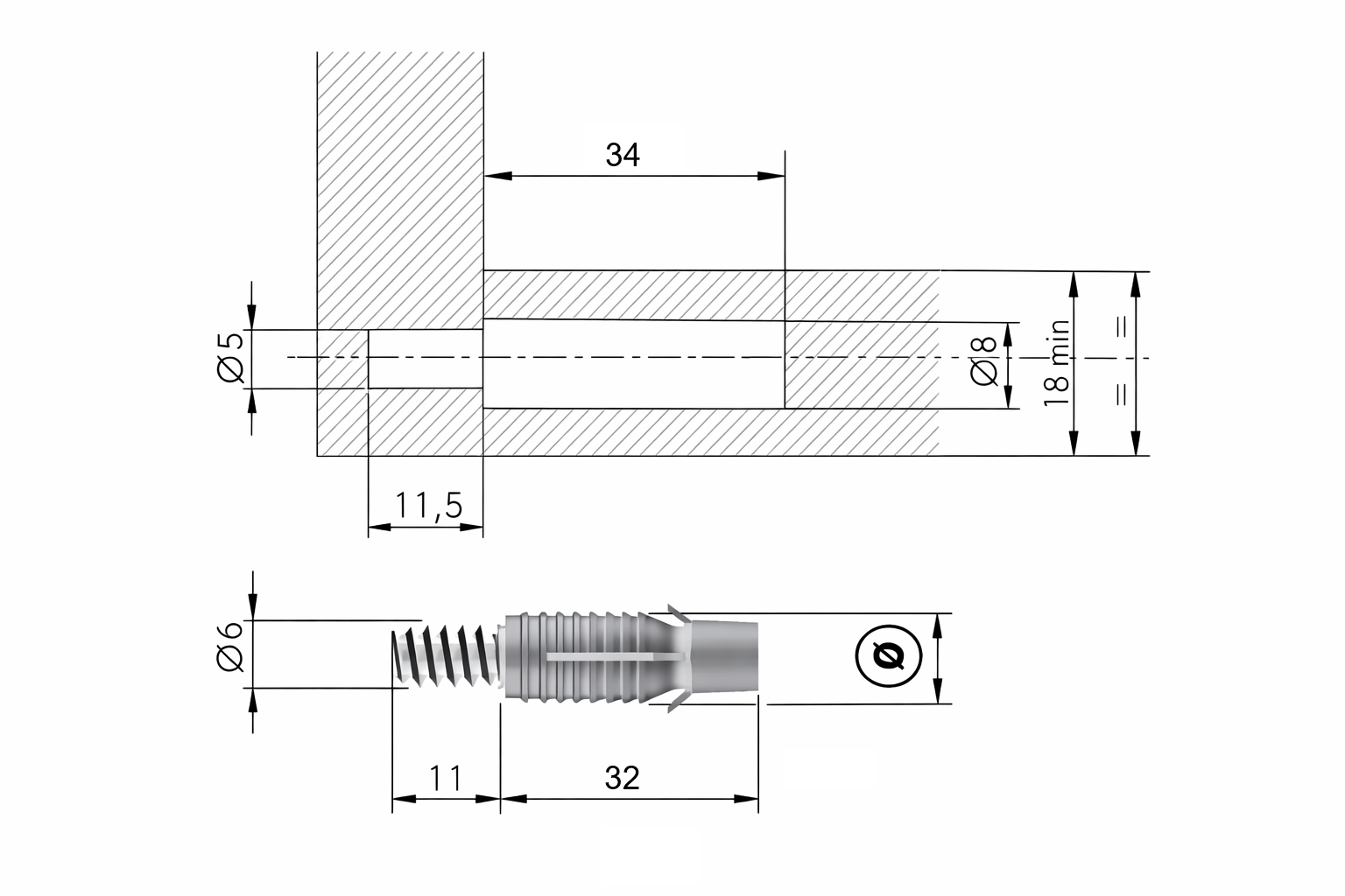 Es compatible con paneles de MDF, aglomerado y madera, y suele utilizarse en combinación con excéntricas, pernos y conectores de unión.