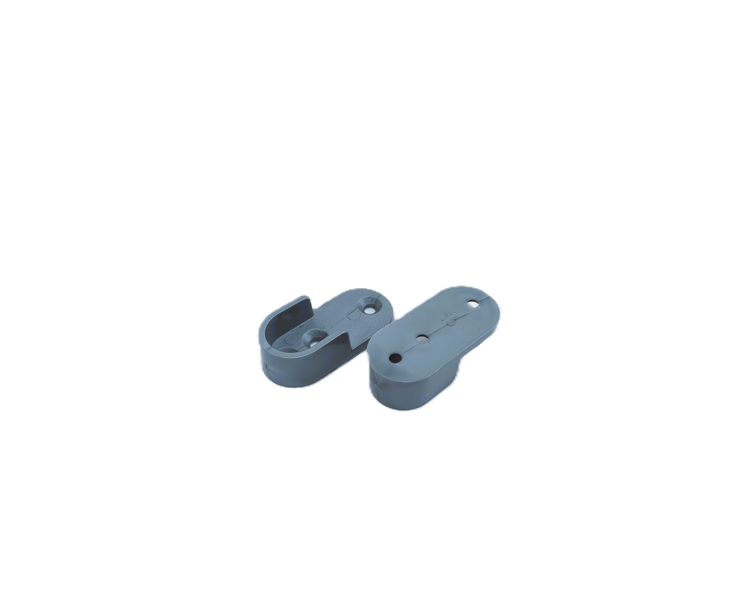 Soporte para barra oval de 15 mm, fabricado en nylon de alta resistencia, diseñado para la sujeción firme de barras en armarios y sistemas de almacenamiento.