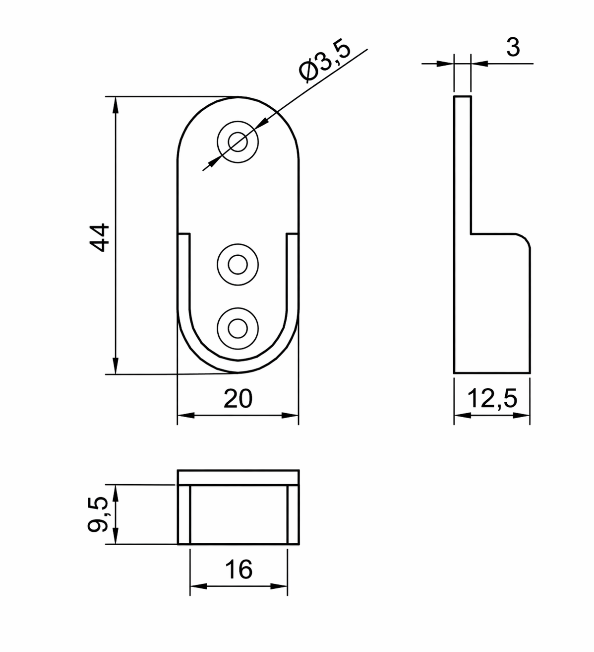 Soporte barra oval 15 mm de nylon, ideal para fijación estable y precisa en armarios.