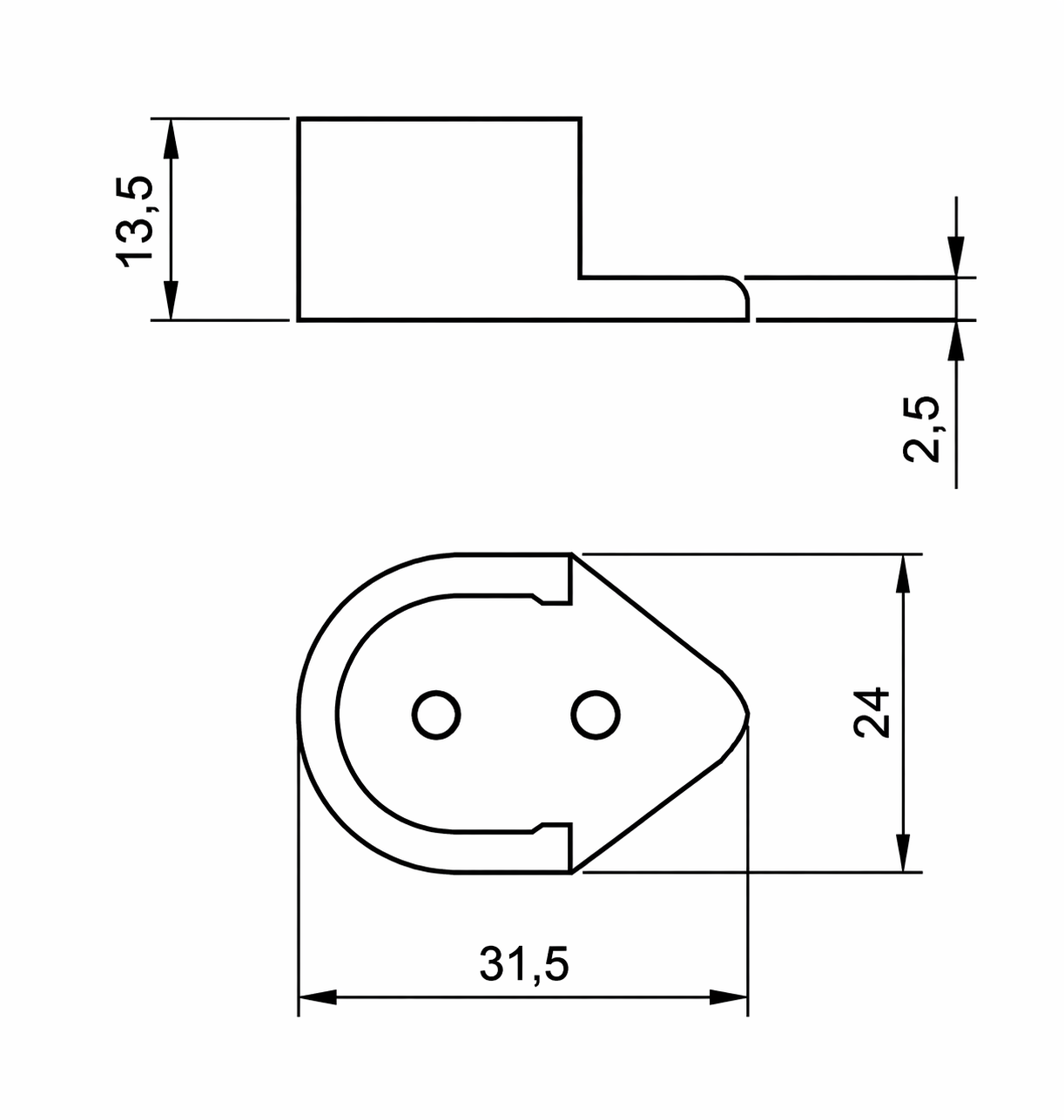 Soporte barra 18 mm liso de nylon, ideal para fijación estable de barras en armarios.