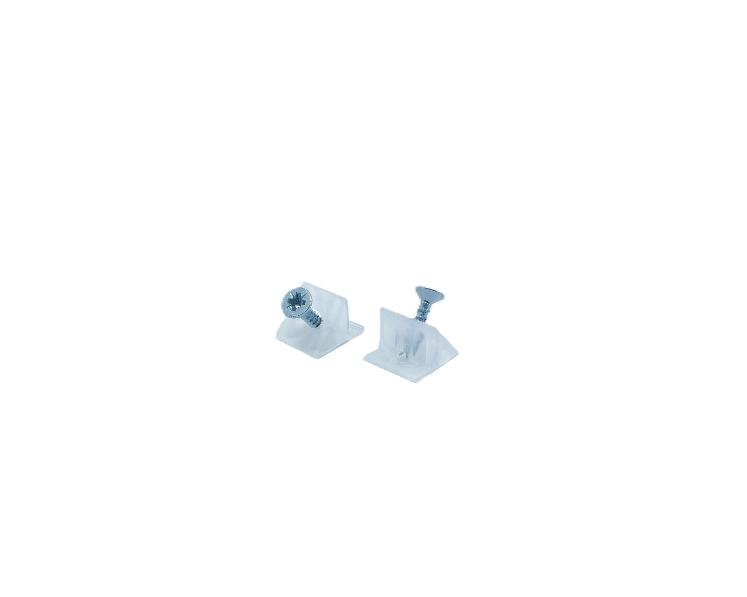Soporte plástico trasera con o sin tornillo, ideal para fijación segura de paneles traseros en muebles.