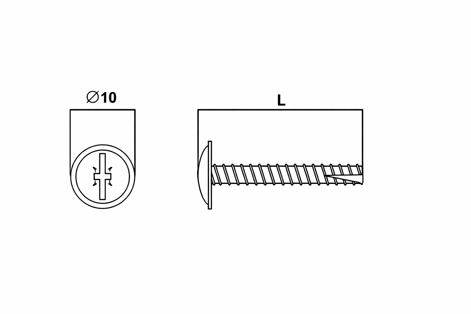 La punta tipo broca permite una perforación y fijación directa sin necesidad de pretaladro, facilitando un montaje rápido y preciso.